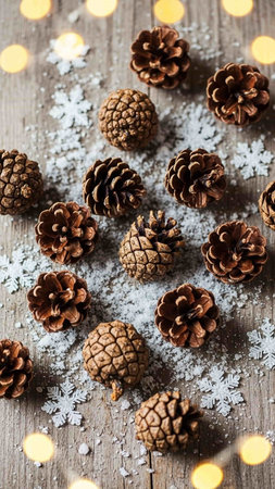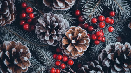 Festive Flair: Captivating Christmas Composition in a Stunning Pattern of Pine Cones and Decorations