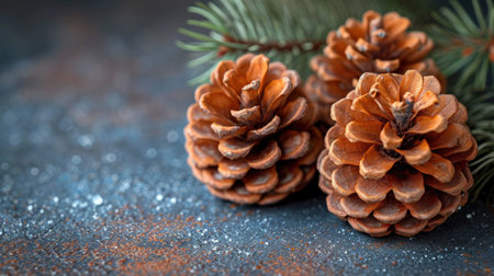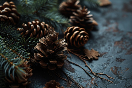 Festive Pine Cones and Fir Branches on a Textured Surface
