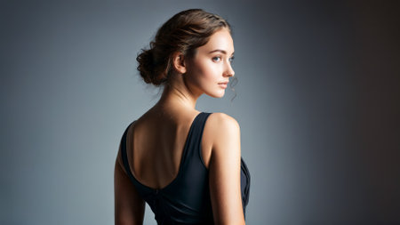 Back view of woman in lingerie monochrome palette strong contrast side profile timeless elegance