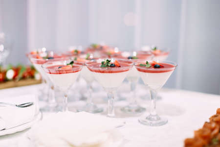 Wedding Party. Red cocktails in glasses ready for party people. Red cocktail at wedding reception.