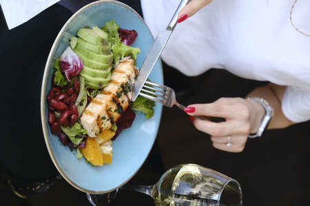 Restaurant dinner. Healthy food. Aperitif before dinner concept