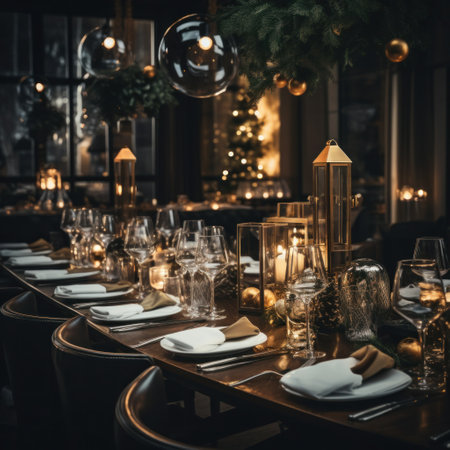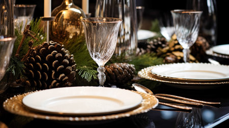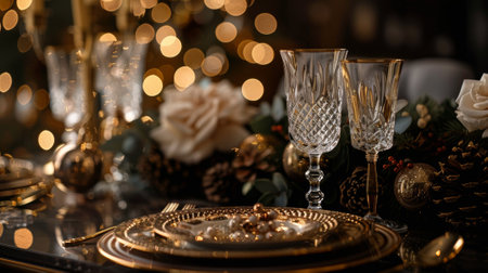new years eve table setting with festive decorations, created with generative ai