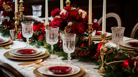 Christmas table decor, holiday tablescape and dinner table setting, formal event decoration for New Year, family celebration, English country and home styling inspiration