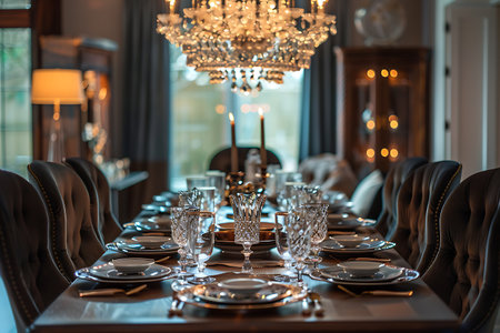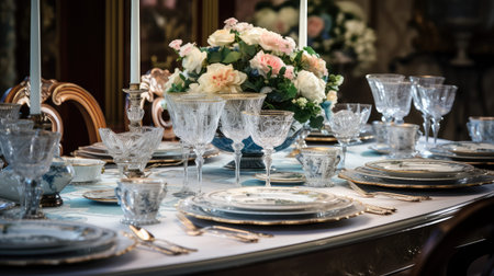 elegance blurred luxury interior home illustration atmosphere table, china crystal, glasses space elegance blurred luxury interior home