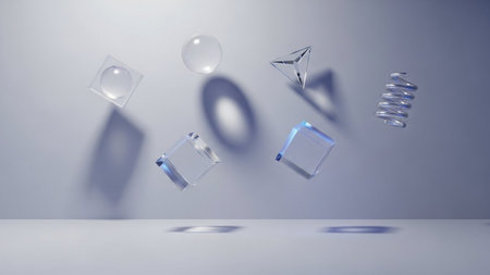 A captivating arrangement of geometric shapes in diverse materials and colors set against a white background, ideal for design projects and creative inspiration.