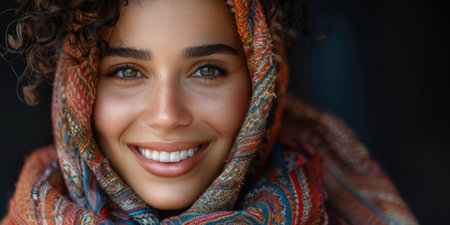 shot of a young woman wearing a colorful scarf in the studio