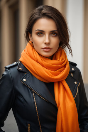 Portrait of a stylish woman wearing an orange scarf