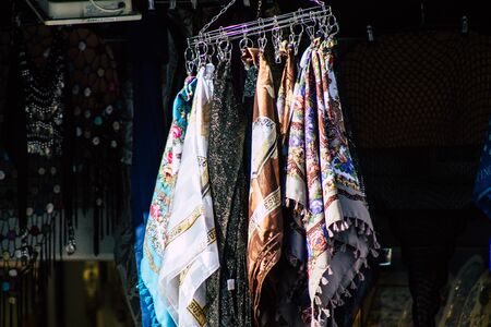 Jerusalem Israel October 06, 2019 Closeup of decorative objects sold in a souvenirs shop at the bazaar of the Old city of Jerusalem in the morning
