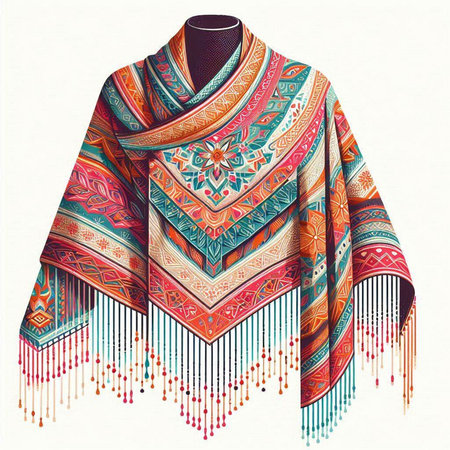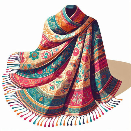 Colorful shawl isolated on white background. Vector illustration.