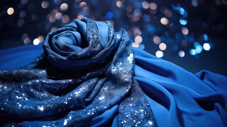 Discover the beauty of this elegant blue fabric featuring intricate embroidery and a luxurious texture, perfect for fashion or decorative use.