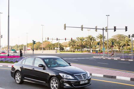Dubai, UAE February 19, 2018: Black car rides on the road