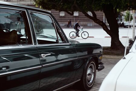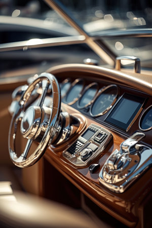 Detail of the interior of an old luxury car. Shallow depth of field.