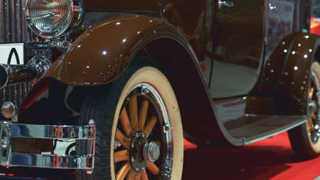 Warsaw, Poland - July 10, 2019: Luxury brown vintage vehicle on the red carpet. Warsaw, Poland - July 10, 2019
