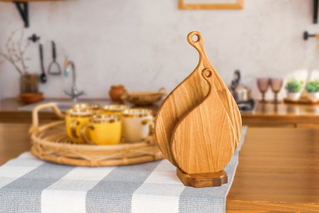 Beautiful handmade wooden stand under the hot pan or teapot .
