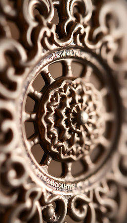 carved template hand craft product wooden design art pattern gray and brown stylish colors textured background wallpaper surface level advertising concept picture with empty copy space for text here