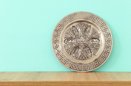 Pesah celebration concept (jewish Passover holiday). Translation for Hebrew Text over plate: (PESAH) PASSOVER