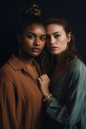 hug between a Caucasian and African American couple, generated by AI. High quality photo