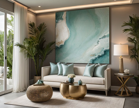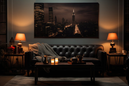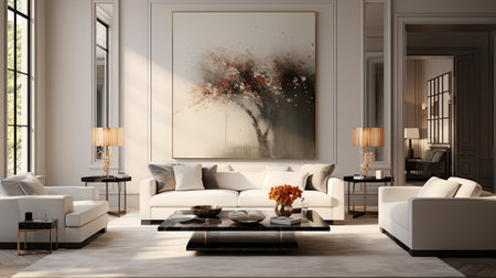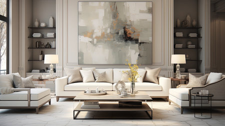 Room with a large painting on the wall created with generative AI technology