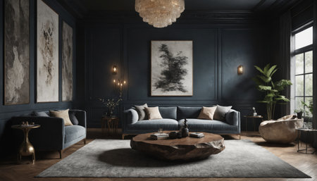 Dark living room interior with luxury gray distinct