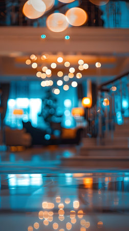 A luxurious hotel lobby with soft lighting and elegant decor.