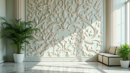 This image features a beautifully textured white wall adorned with elegant moldings, ideal for interior design inspiration and home decor projects.