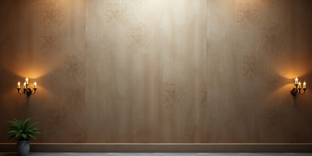 Empty room with textured wall and sconces.
