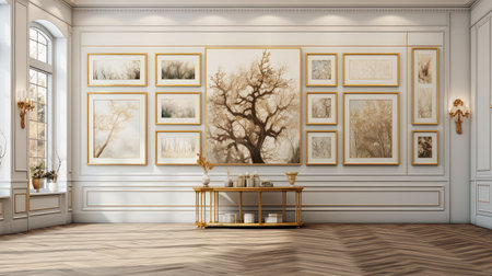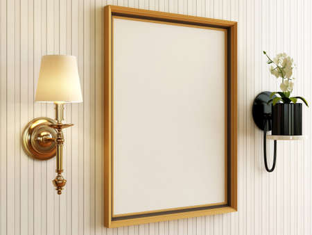abstract 3d decorative wall background with blank picture frame , 3d rendering