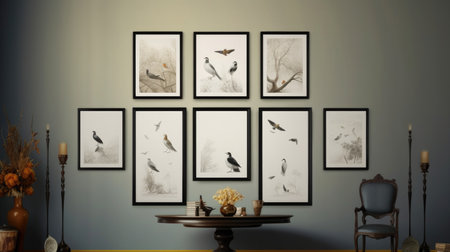 Black wooden photo frames mockup, set collection on modern wall, interior decor