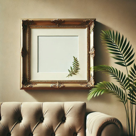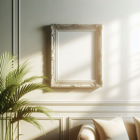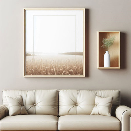 mock up poster frame in modern interior background, living room, Scandinavian style, Generative AI illustration.
