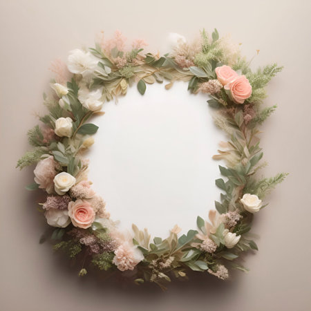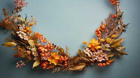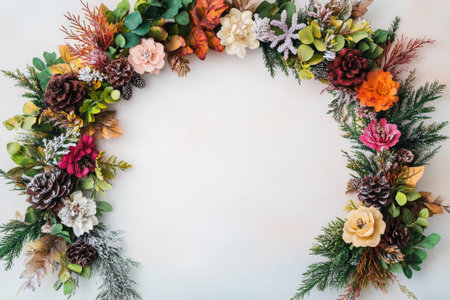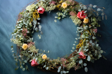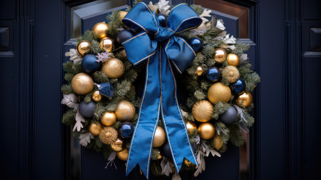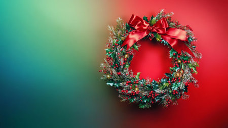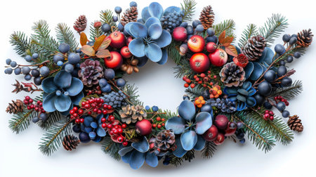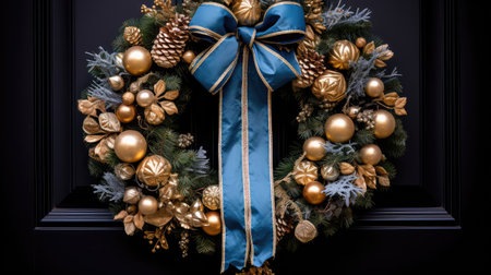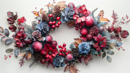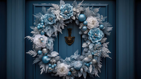 Elevate winter with a Christmas wreath adorned with seasonal blooms, creating a festive centerpiece that captures the beauty and spirit of the holiday season.AI Generated