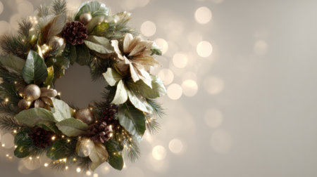 Elegant christmas wreath on neutral background for festive decor and holiday inspiration