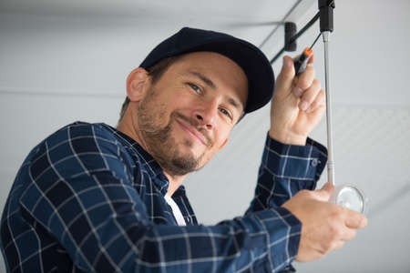 Male electrician working on the electrical installation of a house
