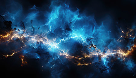 Intense electrical discharge and shine on a dark background