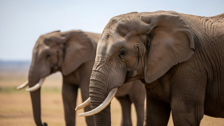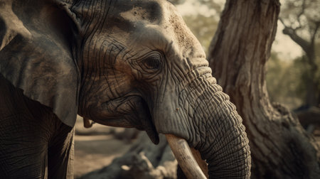 elephant, wrinkled skin, tusks and its trunk generative ai