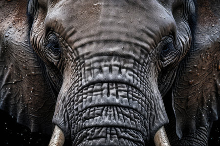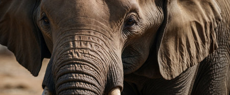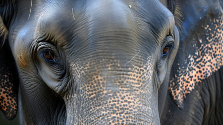 Close up revealing the intricate texture of elephant skin highlighting deep wrinkles and earthy colors. This visual captures natures artistry and the unique characteristics of elephants.