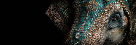 A luxurious elephant head decorated with colorful jewels displays intricate artistry and cultural significance in an artistic setting.
