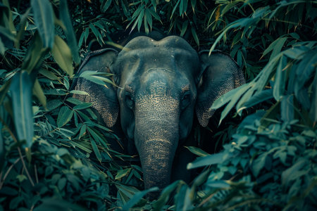 Elusive elephant peeks through a lush green jungle, the embodiment of nature's majesty