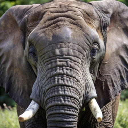 Close-up of an elephant's face, showing detailed texture and a sense of calm wisdom