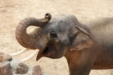 Beautiful elephant in zoo enclosure. Exotic animal
