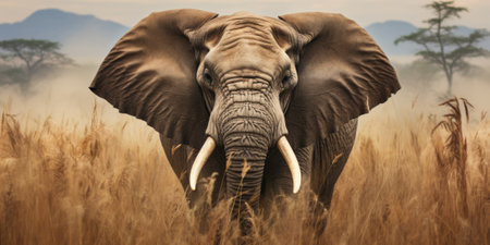 An elephant standing in a field of tall grass. Generative AI image.