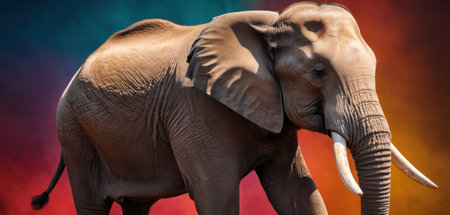 Close-up of majestic elephant with tusks against plain background