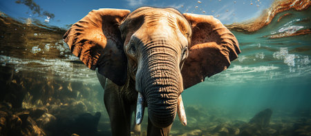 Elephant swimming underwater in the sea