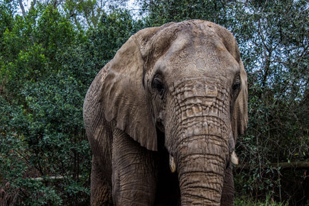 Elephant head close-up. Portrait of an African elephant.