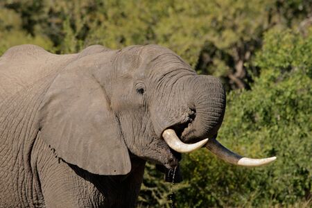 Portrait of an African elephant (Loxodonta africana) drinking water, Sabie-Sand nature reserve, South Africa
