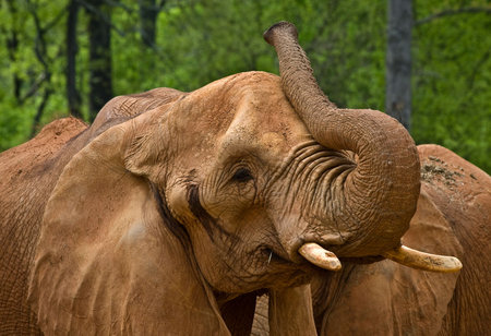 Elephant. Symbol of wisdom and strength with blur green bokeh background