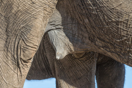 Close-up of the nipple of an african elephant cow, Loxodonta africana