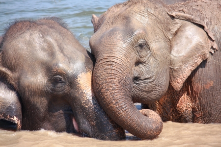 Gentle giants touching trunks in loving embrace, a heartwarming wildlife scene perfect for conservation campaigns