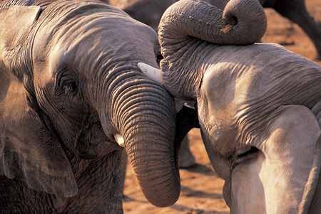 Elephants touching each other gently (greeting) - Addo Elephant National Park