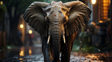 Regal Presence: Majestic Elephant Locking Eyes with the Camera. Generative AI