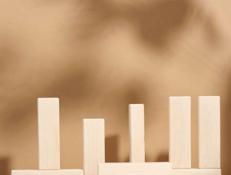 wooden blocks on brown background. Concept scene stage showcase for product, promotion, sale, presentation of cosmetic products